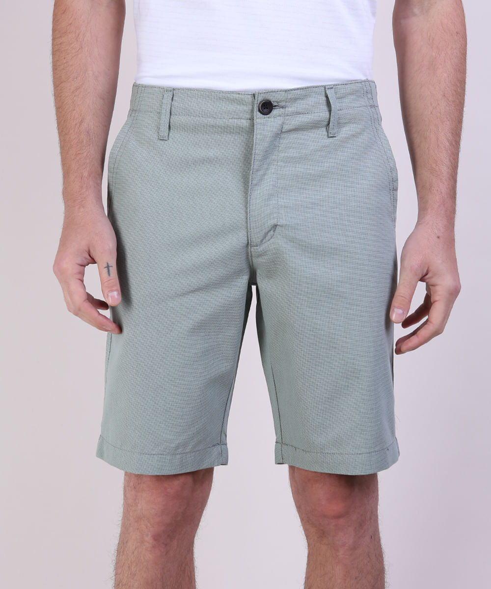 Bermuda de Sarja Masculina Reta Estampada Quadriculada com Bolsos Verde Claro - cea